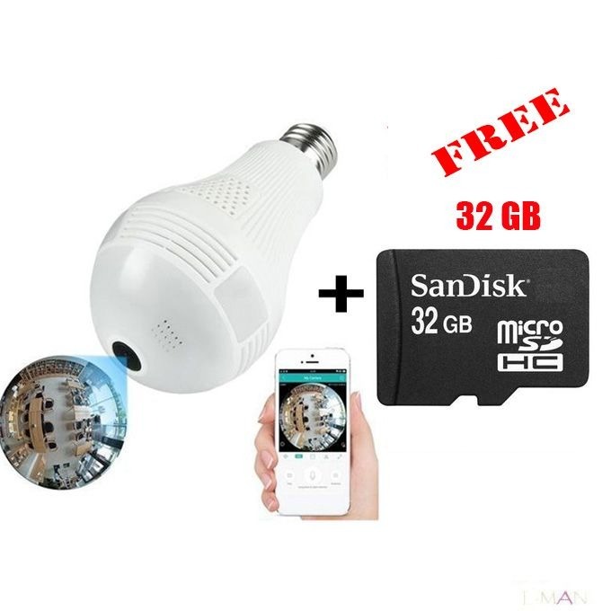 Panorama Nanny Bulb Camera With WIFI + FREE 32GB Memory Card Full HD